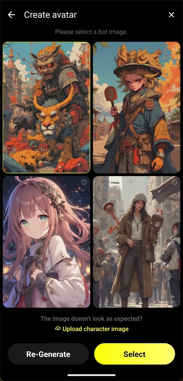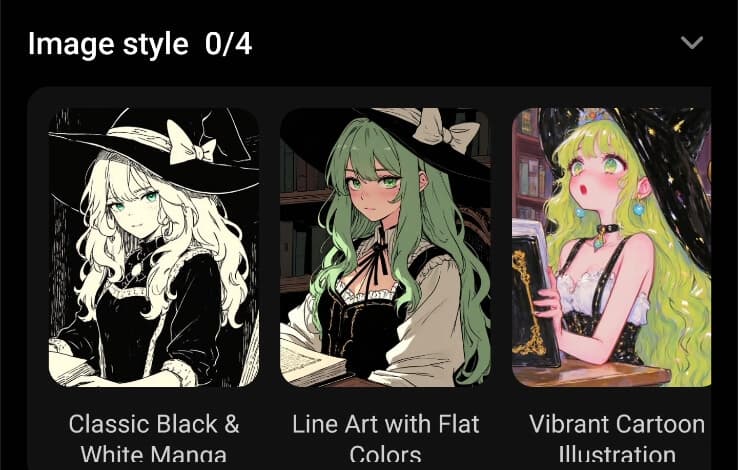 Pick your favorite art style for the character's image! You can choose 1 ~ 4 styles, and Emochi will generate four images based on your selection. (For example, if you choose two styles, you'll get two images in each style.)